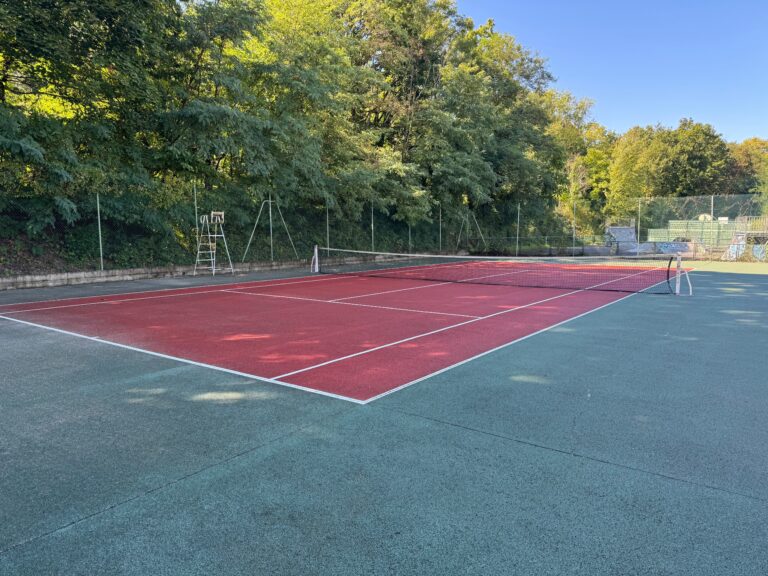 Nos quatre courts extérieurs en béton poreux sont accessibles toute l'année. Leur surface rapide convient aussi bien au jeu loisir qu'à la compétition, avec un entretien régulier pour conserver de bonnes conditions de pratique. Le drainage est plus limité sur ces installations anciennes, mais les terrains restent un atout majeur du club au quotidien pour les entraînements, les rencontres et le jeu libre.